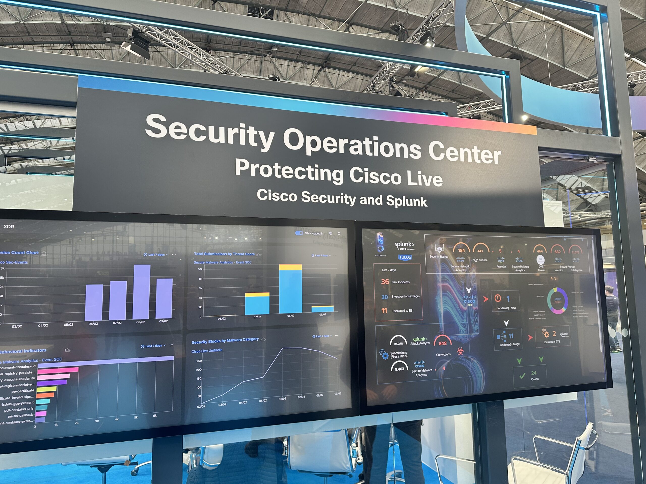 Cisco Data Fabric дає змогу збирати дані з будь-яких джерел незалежно від виробника, використовувати природну мову для складних технічних запитів і отримувати єдине вікно спостереження за всією інфраструктурою. Приклад з конференції: Security Operations Center (SOC) from the Box — готове рішення для моніторингу безпеки на базі Splunk, яке можна швидко розгорнути під конкретну подію (як приклад називали Super Bowl у США) і потім згорнути. Усі дані, процеси та дашборди — в одній «коробці».